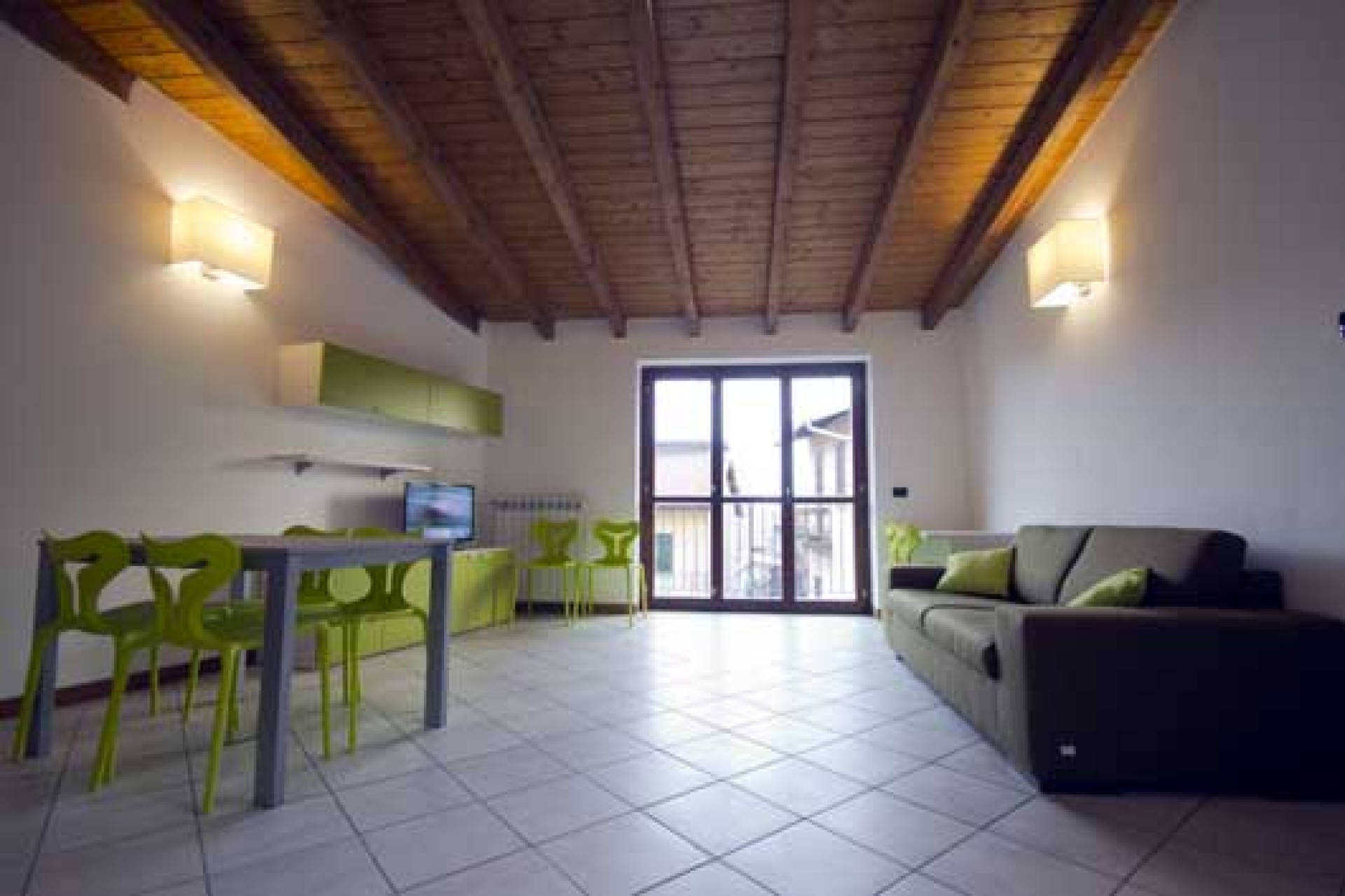 Per quanto riguarda gli appartamenti ospitanti persone con disabilità stabilmente inserite nel progetto, essi si collocano all’interno di un immobile indipendente posto nel centro della città di Somma Lombardo, composto al primo piano da un appartamento di mq 75 (soggiorno con angolo cottura, due camere da letto, servizio e box) e al secondo piano da un appartamento mansardato con tetto a vista di mq 80 (soggiorno con angolo cottura, due camere da letto, servizio, due ampi balconi e box). Gli appartamenti sono stati arredati, attrezzati e adattati in modo tale che le azioni di vita quotidiana risultino accessibili e facilitate, favorendo l’espressione dei potenziali di autonomia.